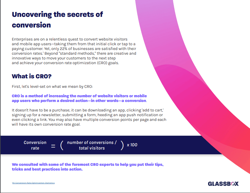 Enterprises are on a relentless quest to convert website visitors and mobile app users—taking them from that initial click or tap to a paying customer. Yet, only 22% of businesses are satisfied with their conversion rates.1 Beyond “standard methods,” there are creative and innovative ways to move your customers to the next step and achieve your conversion rate optimization (CRO) goals.