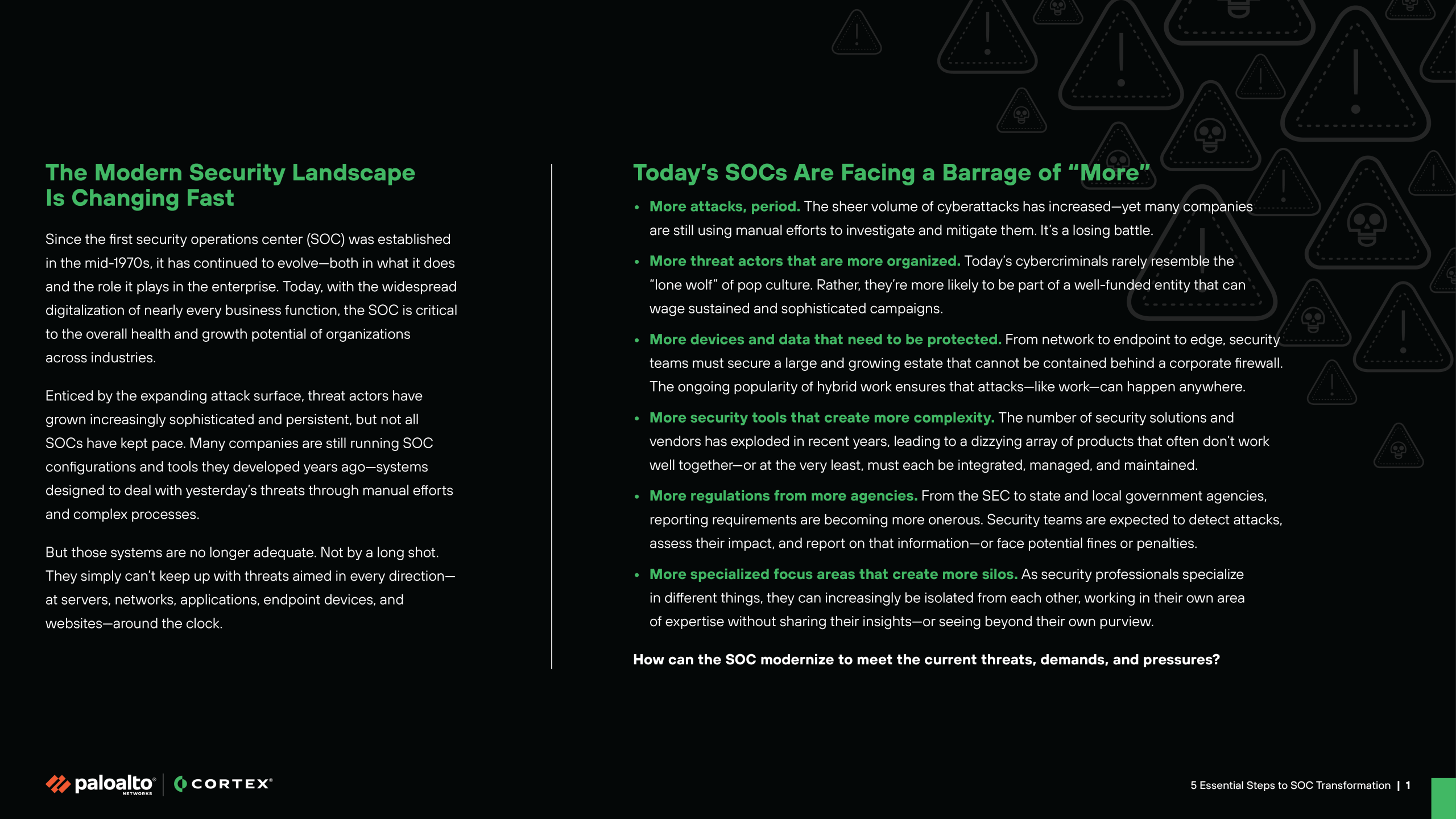 With the modern security landscape changing fast, the SOC must evolve to meet current threats, demands and pressures.