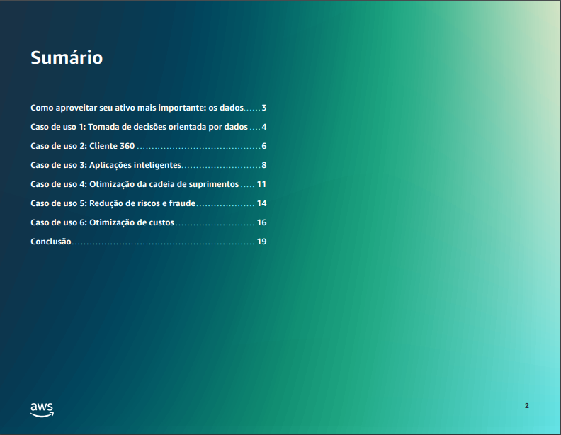 Os dados são a peça essencial da transformação digital, estimulando novos insights e experiências que podem levar sua organização adiante. Eles estão no centro das operações comerciais e podem conduzir qualquer aplicação, processo e decisão comercial, revelando novos insights e ajudando você a fornecer ao cliente uma experiência mais personalizada e orientada por valor. É o que turbinará sua transformação digital e o impulsionará para um futuro mais escalável e lucrativo.