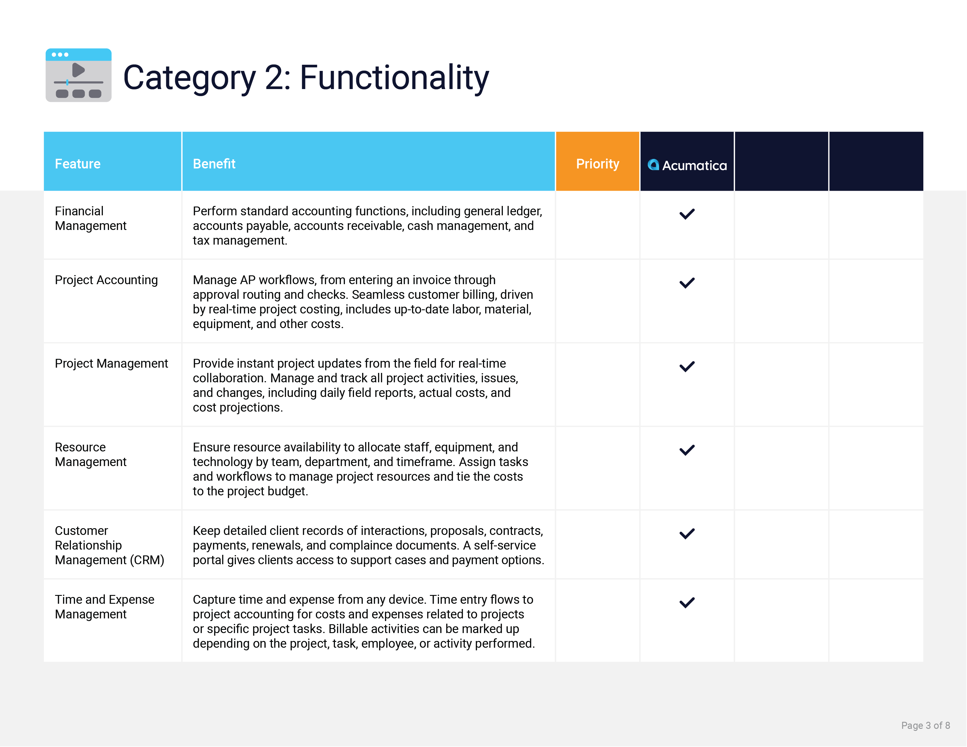 Functionality – what feature and functions does the product have that can perform your daily accounting and business management functions?