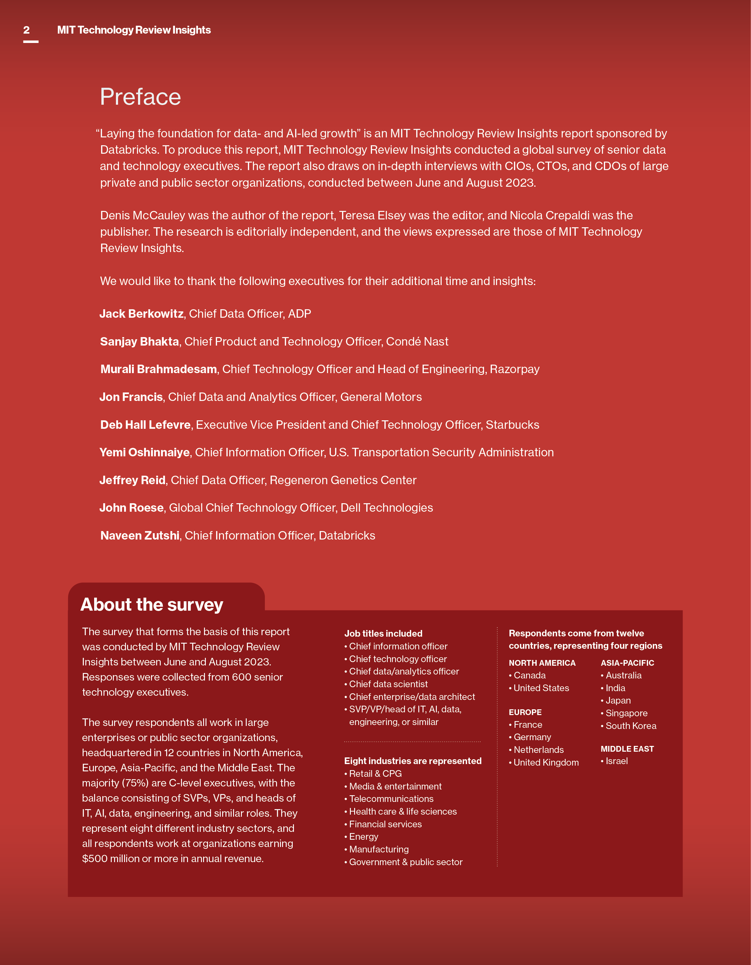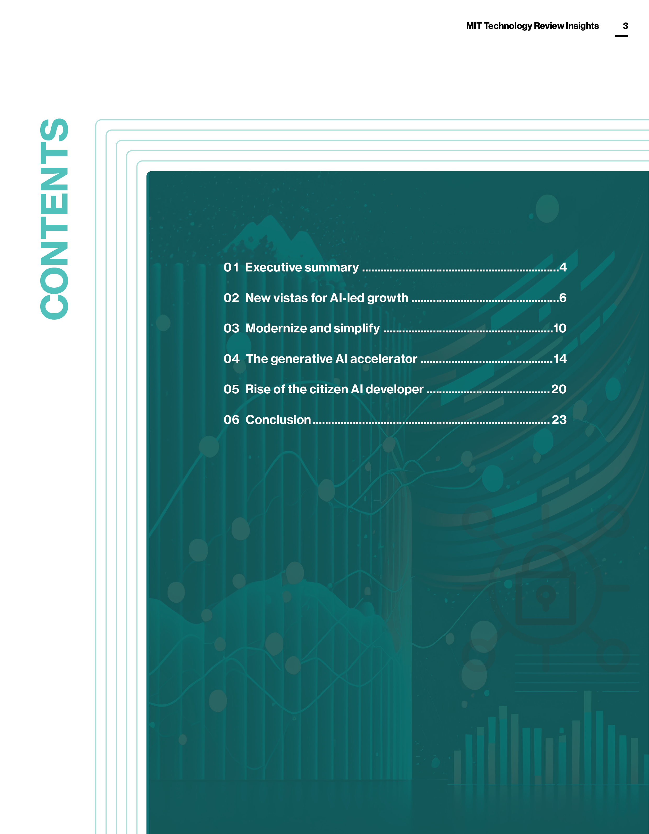 Enterprise adoption of AI is ready to shift into higher gear. The capabilities of generative AI have captured management attention across the organization, and technology executives are moving quickly to deploy or experiment with it. Many organizations intend to increase their spending on the wider family of AI capabilities and the data infrastructure that supports them by double digits during the next year. And notwithstanding concerns about unfavorable economic conditions, executives see opportunities to leverage data and AI to deliver more growth to their organizations, to both the top and bottom lines.