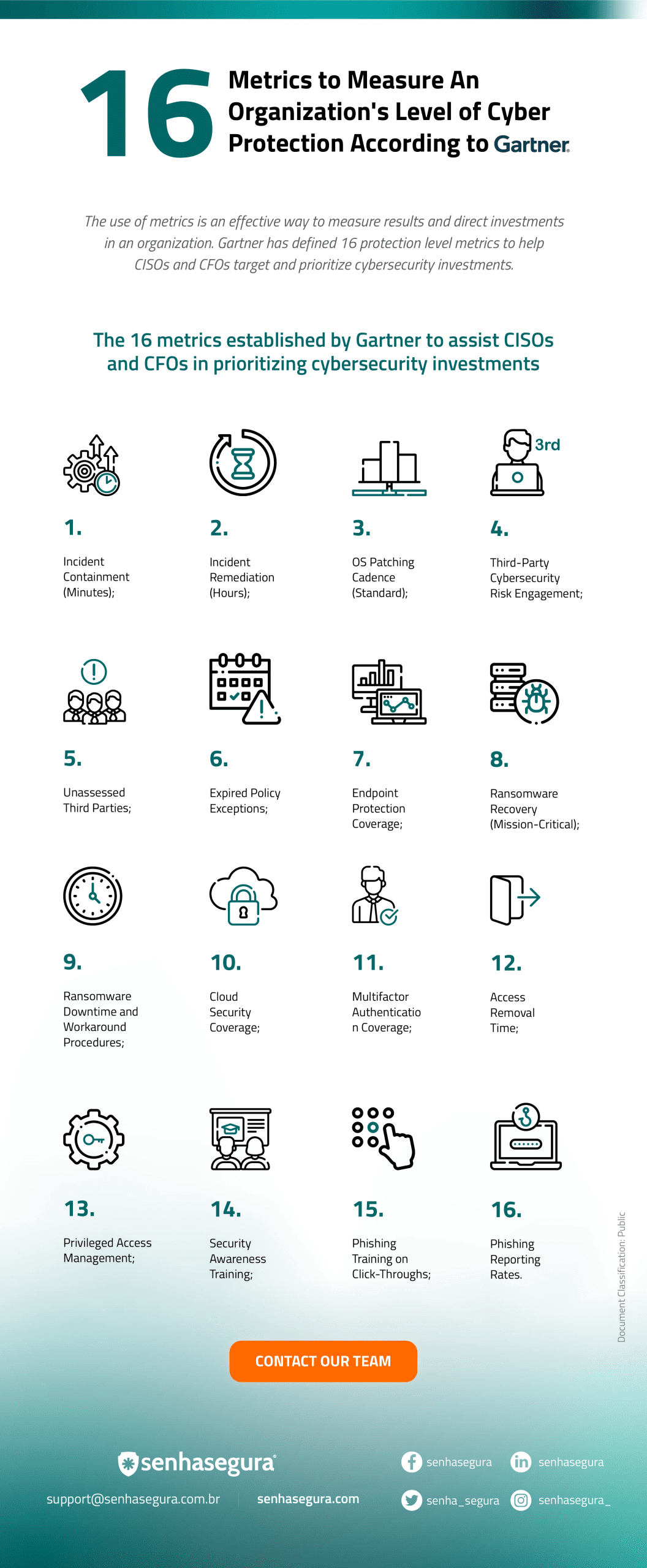 The use of metrics is an effective way to measure results and direct investments in an organization. Gartner has defined 16 protection level metrics to help CISOs and CFOs target and prioritize cybersecurity investments.
