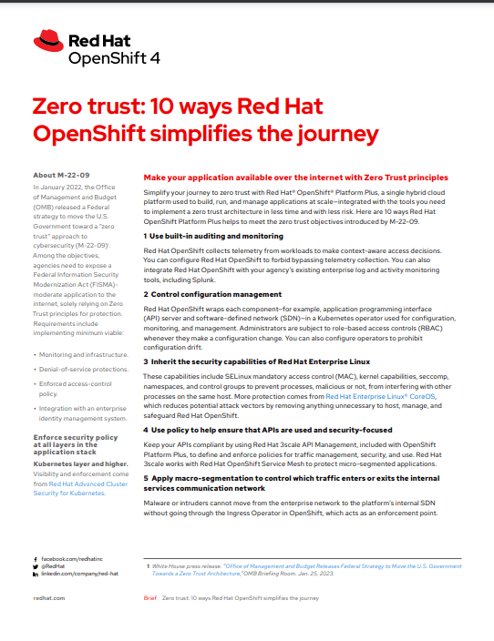 to implement a zero trust architecture in less time and with less risk. Here are 10 ways Red Hat